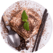 Mascarpone cheese, espresso, ladyfingers, cocoa powder, sugar, eggs