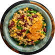 Quinoa, chickpeas, cucumber, red onion, feta, lemon dressing